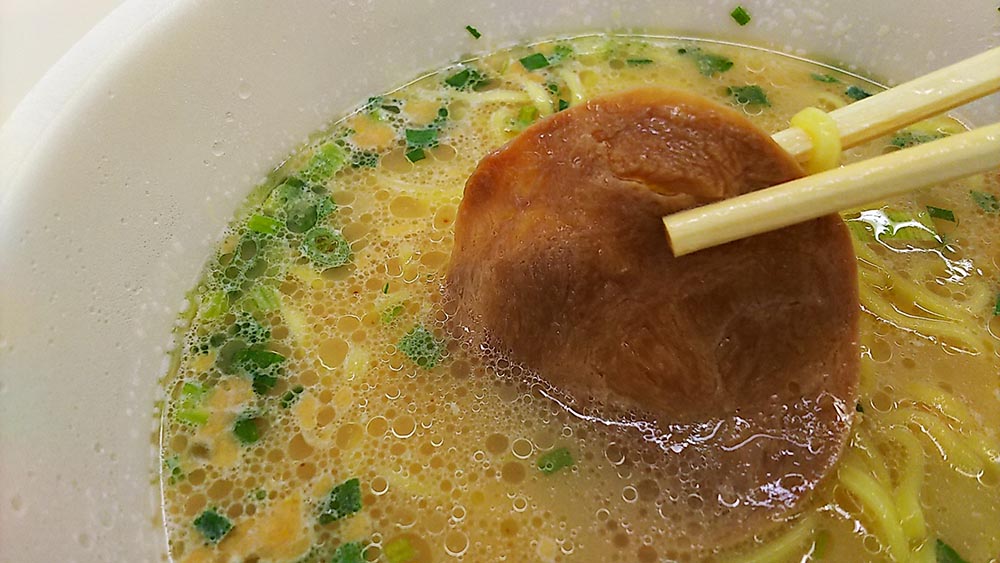 チャーシューは普通でした(´・ω・`)日清食品のラ王と肩を並べる美味しさだと思います。思わずスープを飲み干してしまいました。